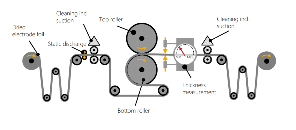 Calendering compresses the dried electrode layers to enhance energy density and electrical conductivity. It reduces porosity while maintaining flexibility.